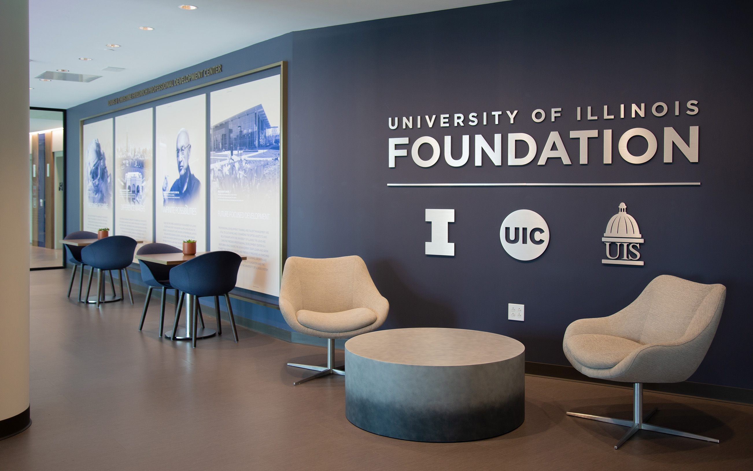 The Foundation is grateful for the generosity of numerous donors who helped make the Philanthropy Center possible. These philanthropists—and the many donors who contribute to the University of Illinois—are honored throughout the building.